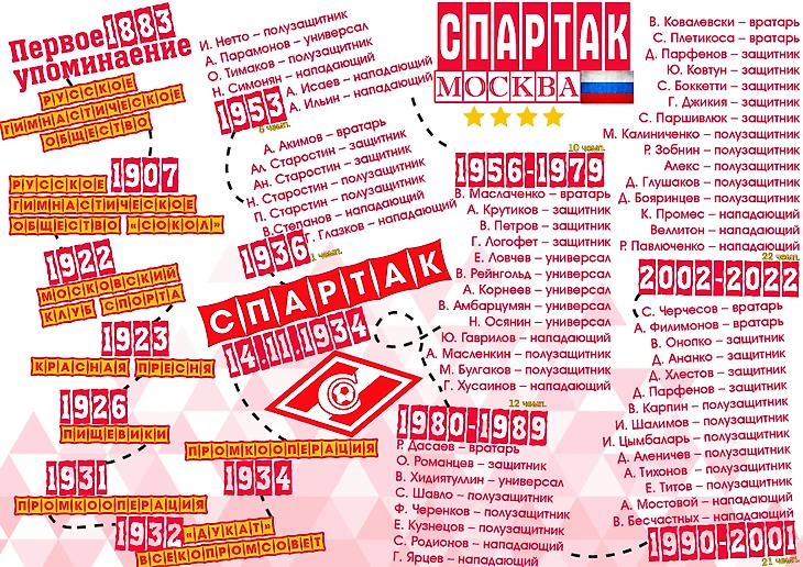 Недавно опубликовал календарь «Спартака» и получил интересную обратную связь от одного комментатора: «На верхнем фото трофеи выставили. Неправильно это. Если уж показывать кубки и медали, так покажите и тех, кто их завоёвывал, хотя бы в некотором количестве». Идея мне понравилась. Поэтому держите историческую памятку московского «Спартака».
