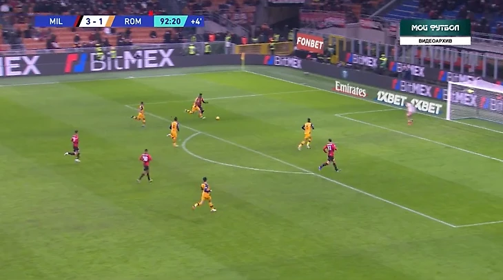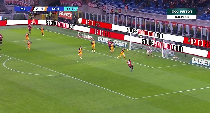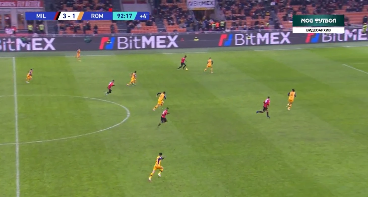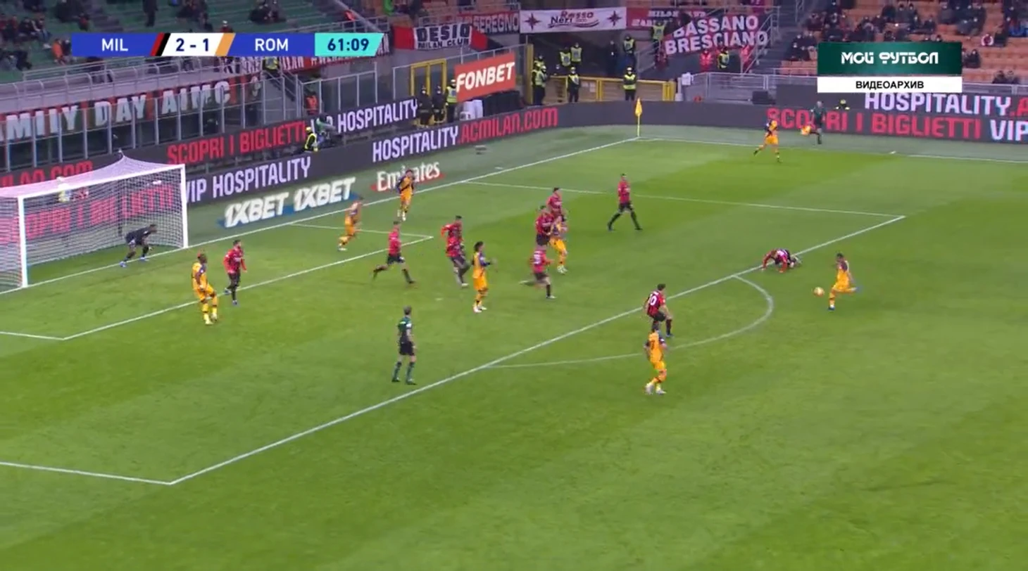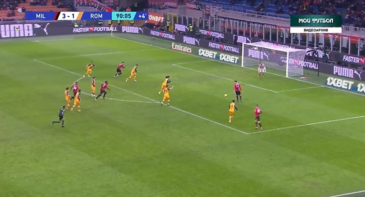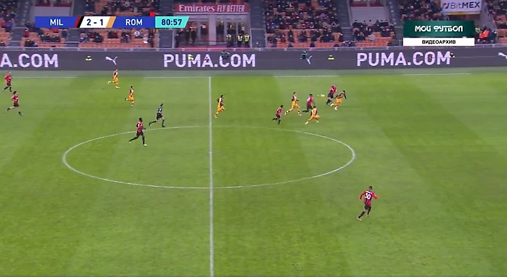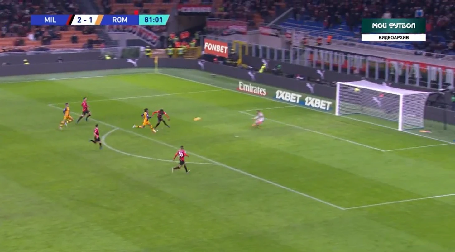 На 81 минуте случилось то, что давно назревало - третий гол в ворота "Ромы". Габбия выбивал мяч в центр поля на Ибрагимовича, швед выйграл борьбу у Смоллинга и скинул на Леао.