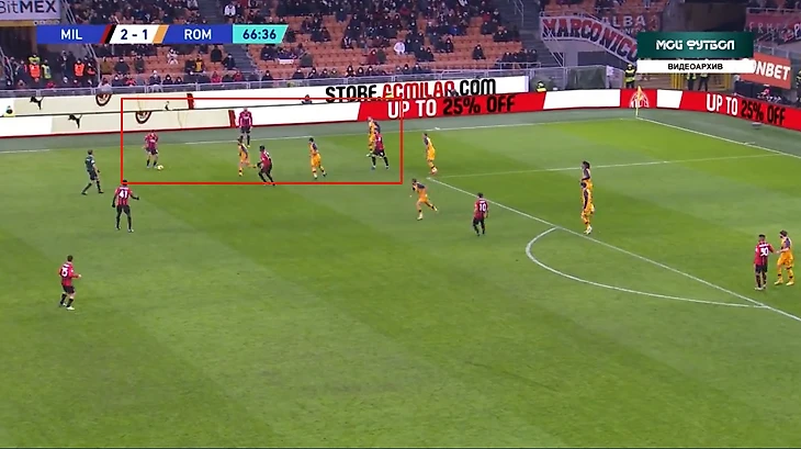 После забитого гола "Милан" отдал мяч "Роме" и защищался по схеме 4-1-3-2