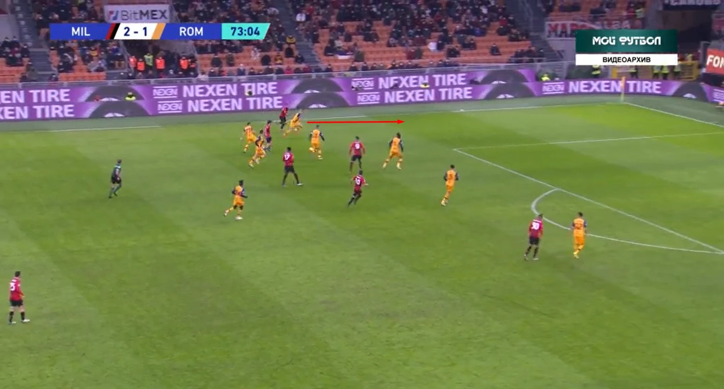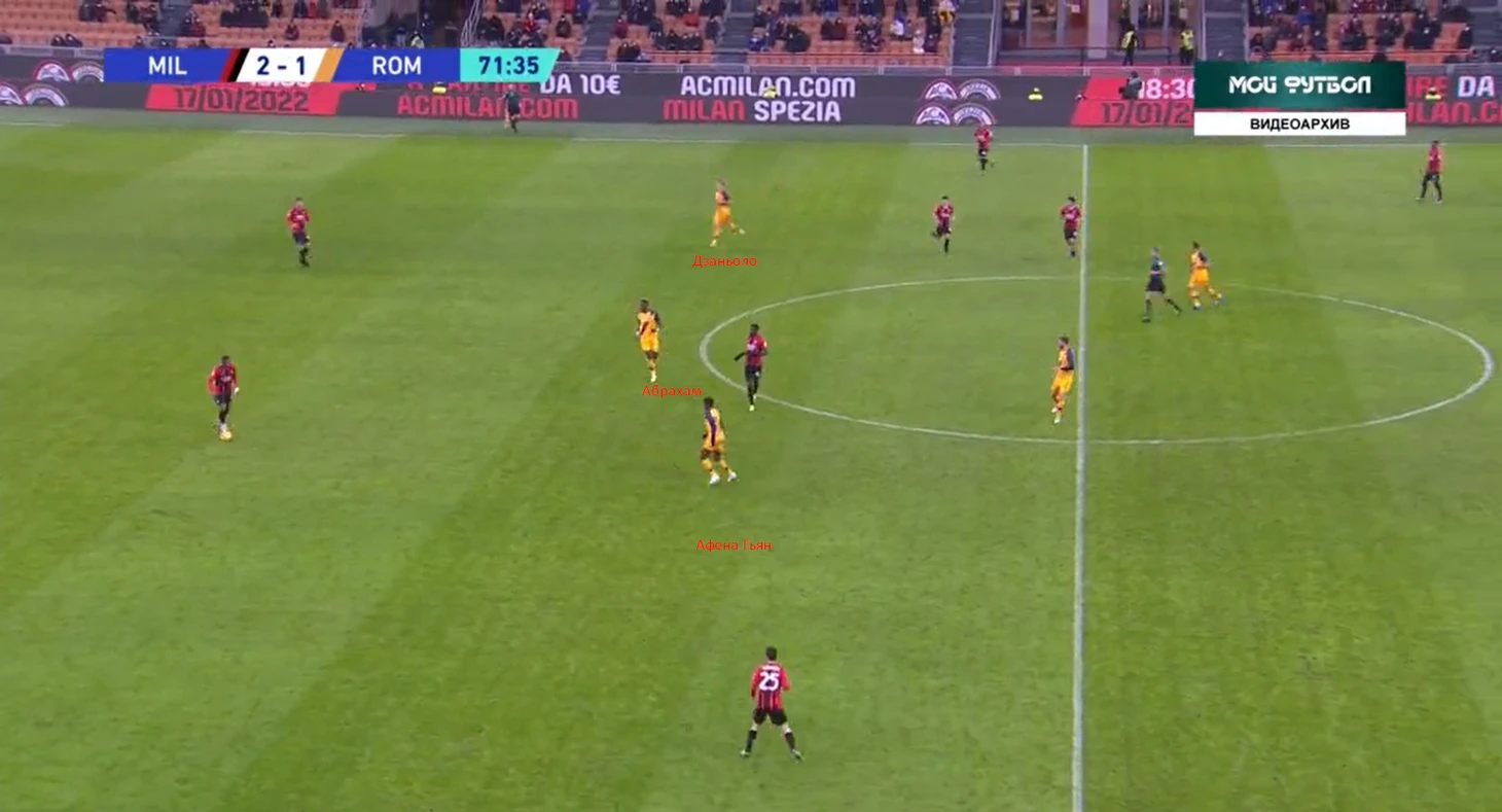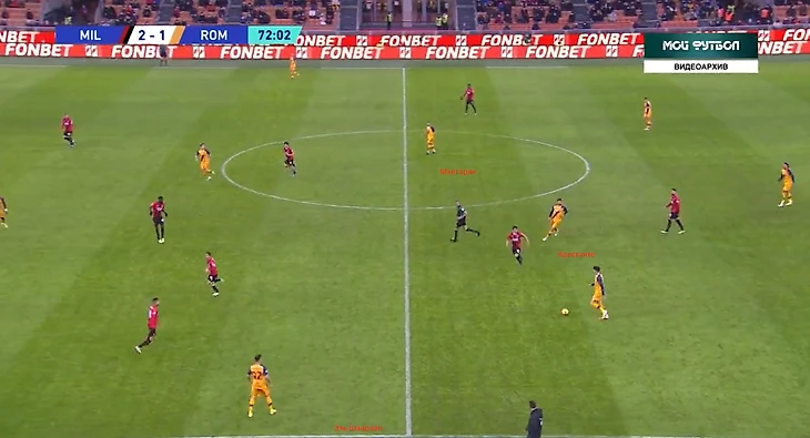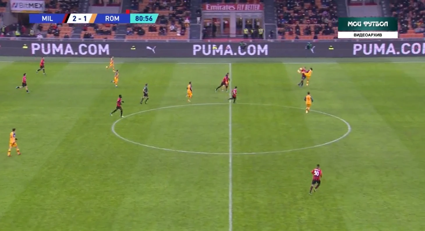 Можно сказать, что оба гола Милана были невынужденными ошибками Ромы. Наверно, так и есть. Но большая роль в этом миланского прессинга. С первых минут защитников Ромы накрывали, и Смолингу, Ибаньесу приходилось просто выбивать мяч вперед на Абрахама, надеясь на скидки нападающего.