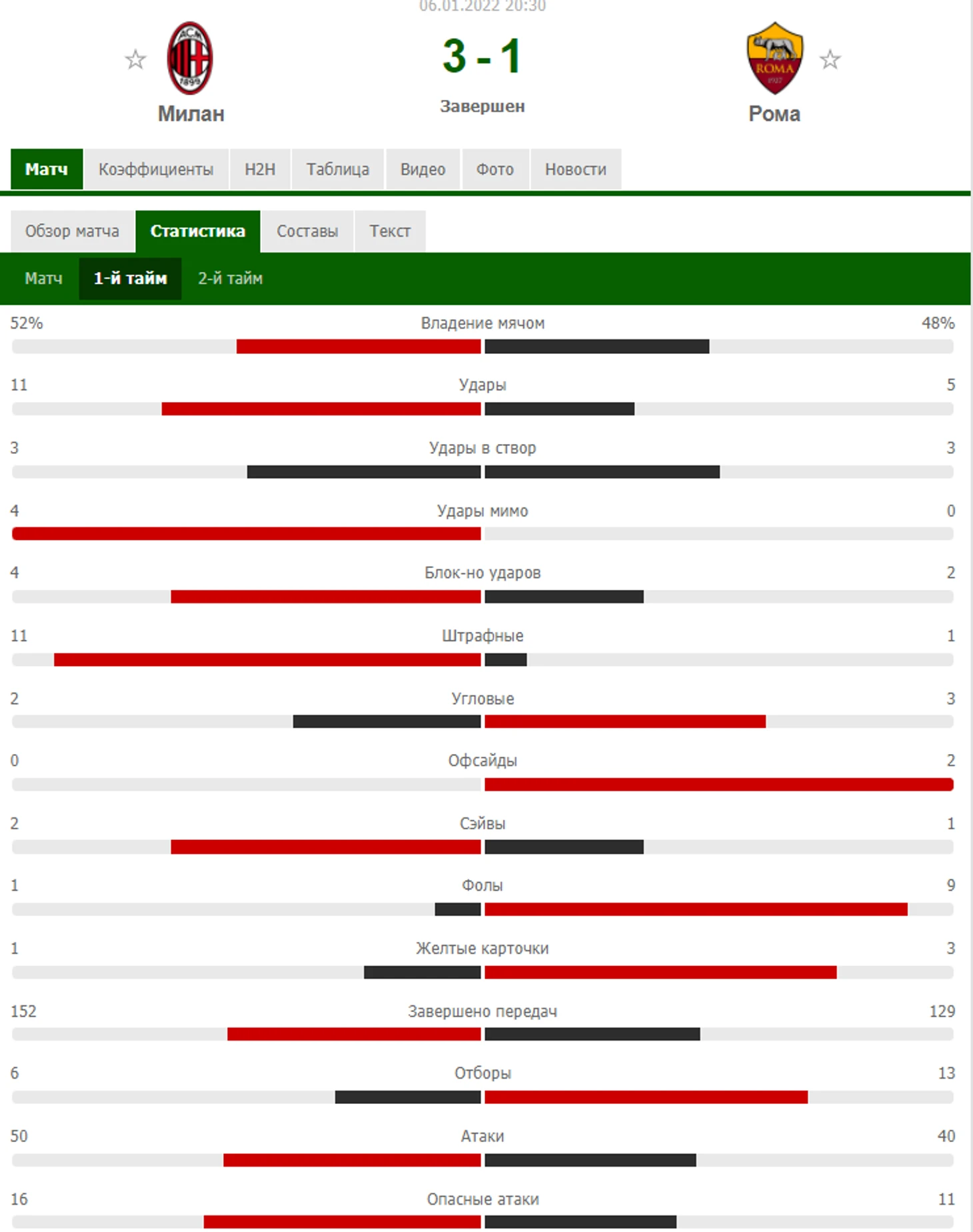 "Милан" начал встречу агрессивно, применяя высокий прессинг, команда бежала. И это дало свои плоды уже в самой завязке матча. На 4 минуте после удара Флоренци хозяева получили право на угловой. После подачи с края поля от Мессиаса, игроки "Ромы" выбили мяч из штрафной но там нашелся Тео, который зарядил по мячу зрело в угол.