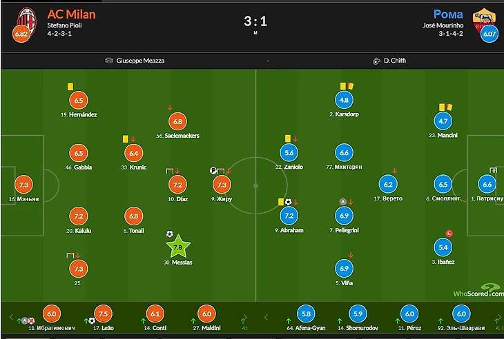 На 67 минуте на левом фланге классную перепасовку устроили игроки Милана, и после навеса Жиру! Диасу чутка не хватило точности для попадания в дальний угол. Чуть позже, спустя 20 секунд, Мессиас пробил чуть выше ворот. Замены Пиоли сработали!