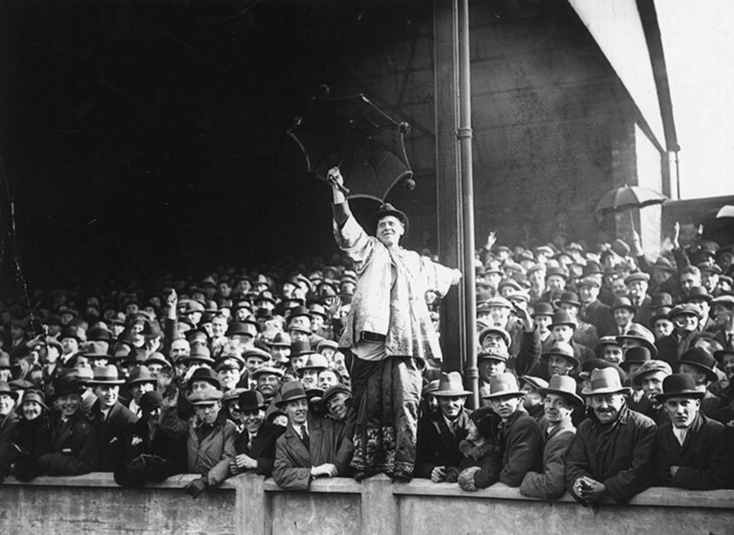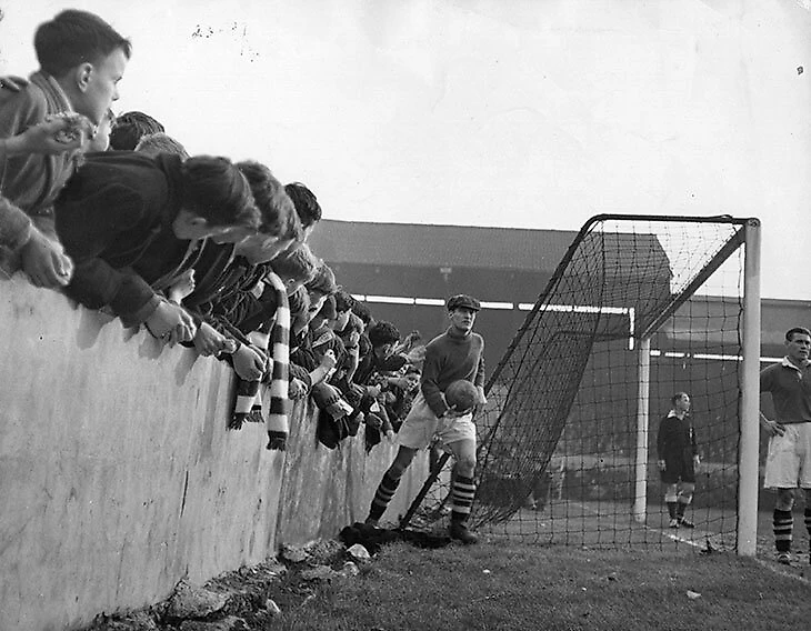 С начала XX века центральные сектора стадионов были сидячими, а за воротами располагались террасы – иногда просто земляные насыпи, где собирались болельщики, иногда уложенные старыми шпалами, чтобы на них было удобнее стоять.