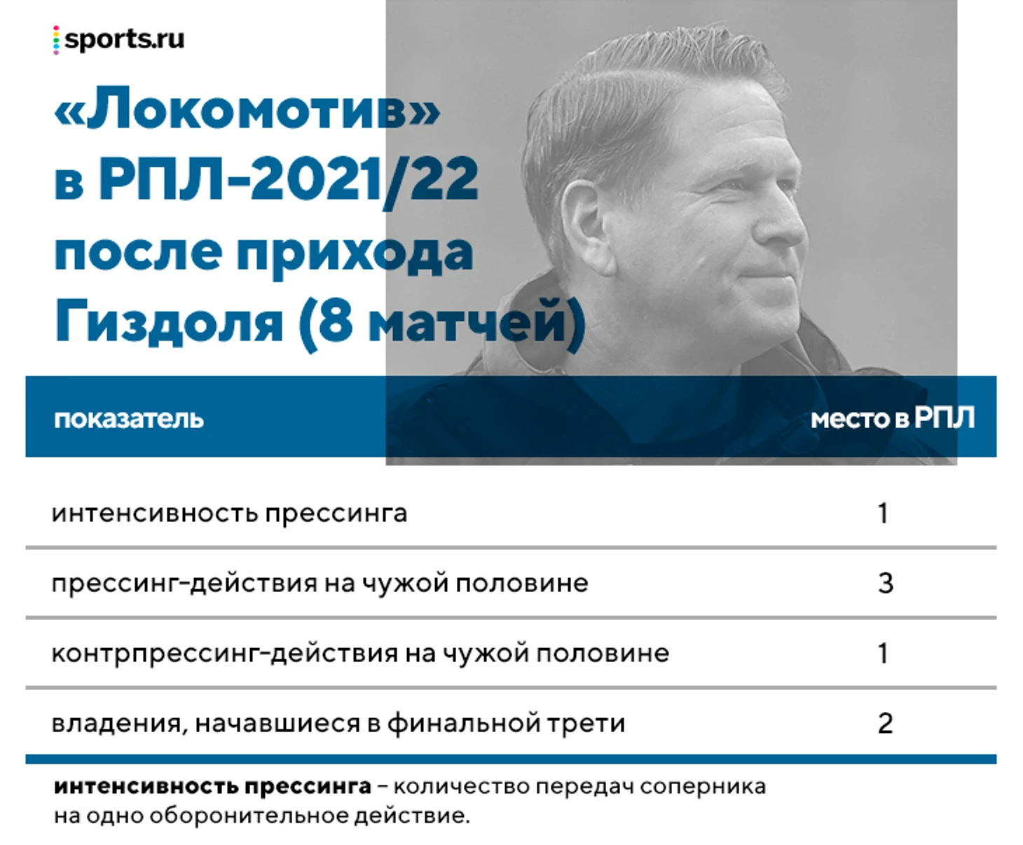 Если рассматривать только отрезок при Гиздоле, показатели Смолова выглядят лучше – 4-е место по прессинг-действиям и 6-е по контпрессинг-действиям среди тех, кто отыграл не менее 360 минут (то есть половину от максимума).