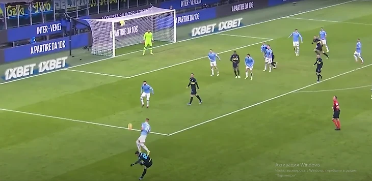 В динамике ещё больше бросается в глаза великолепный пас Бареллы. Оффсайд, спасение Стракоши, промах Де Врея с углового и наконец, гол Бастони. Кулиманация всего атакующего давления Интера