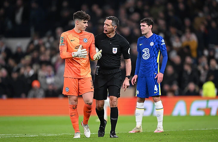 ✅ 57-я минута. После паса Кейна Лукас Моура вывалился на ворота «Челси». На пути оказался Кепа, классно сыгравший в мяч. Судья Марринер сначала указал на точку, но сбегал к монитору и понял: к Кепе не может быть претензий. Тоже не пенальти.
