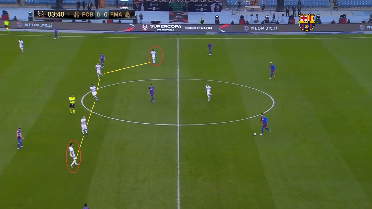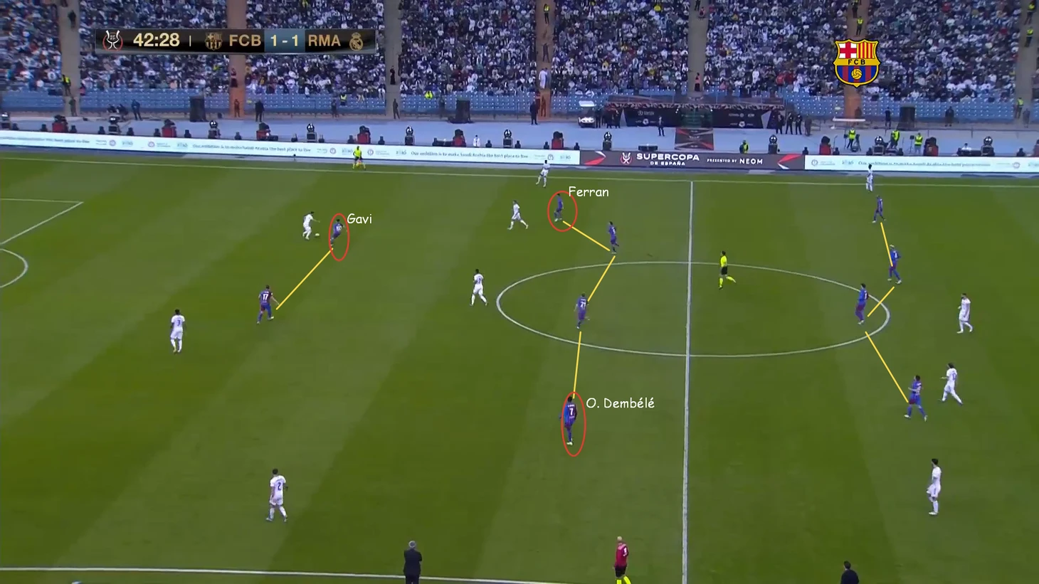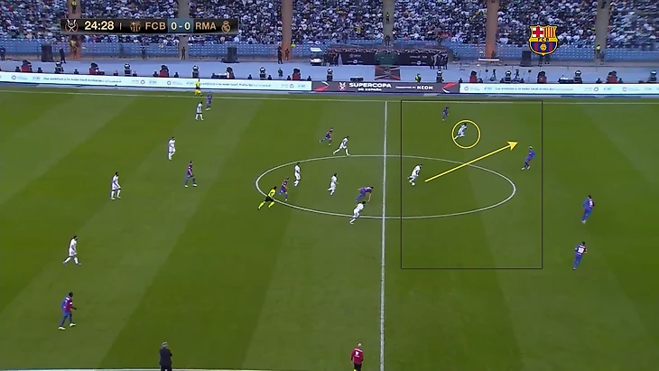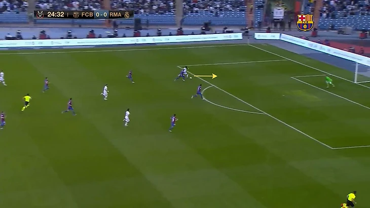 Несмотря на большое количество ударов по воротам «Мадрида», оба гола «Барселоны» пришли после длинных передач (в первом случае передача на Френки, выигравшего борьбу и позволившего продлить атаку, во втором - подача Альбы на Фати).