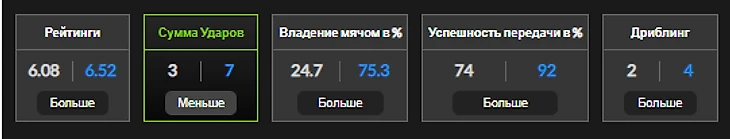 3. Отобрал мяч 1 раз, а перехватил – 3 (столько же у Жоржиньо, Рюдигера и Силвы, у остальных – 0 или 1).