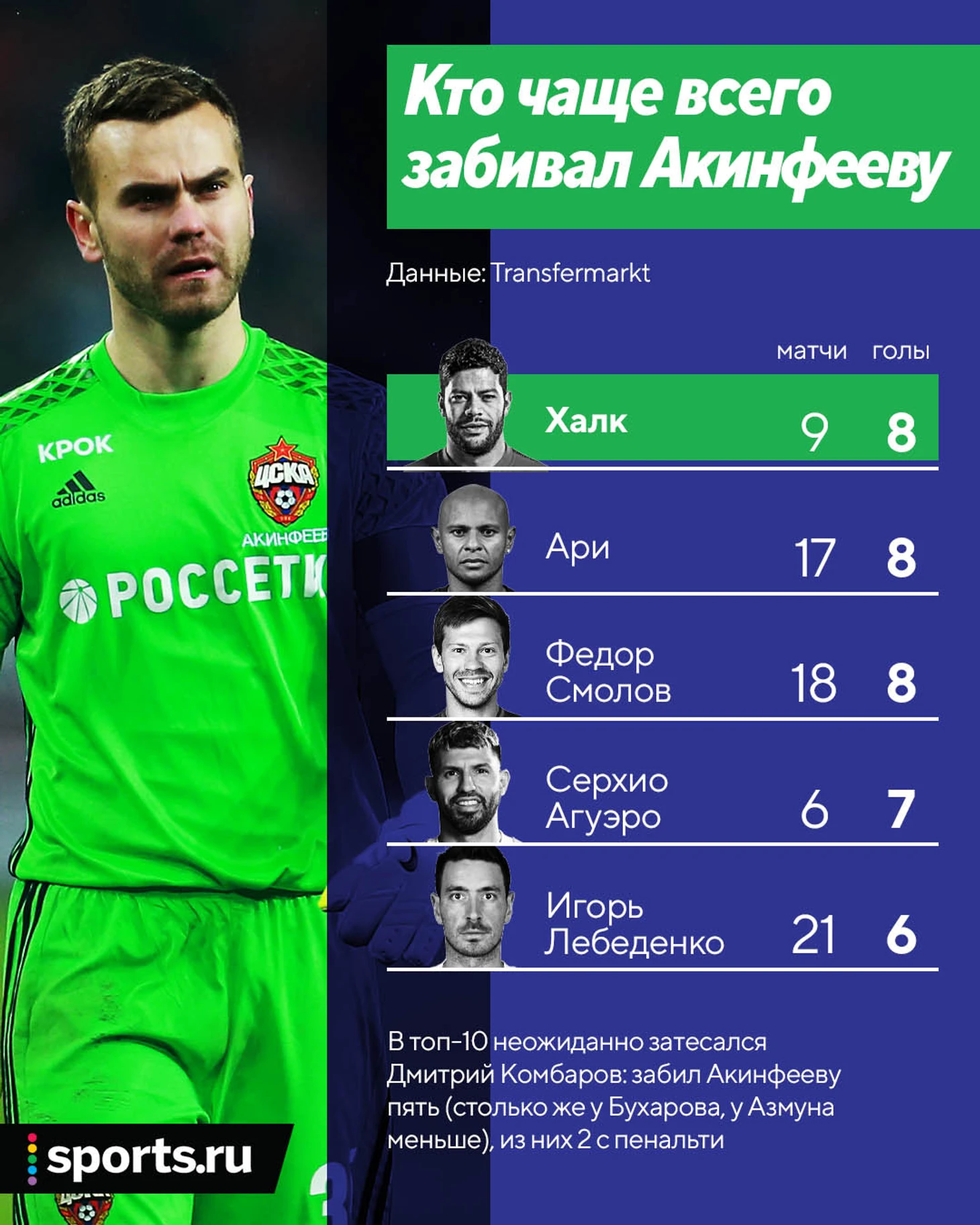 Кто чаще всех забивает топ-вратарям? Роналду громит Нойера, Облака и Де Хеа, Акинфеев получил 8 от Халка и Смолова