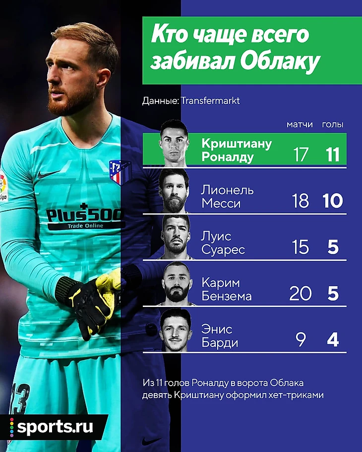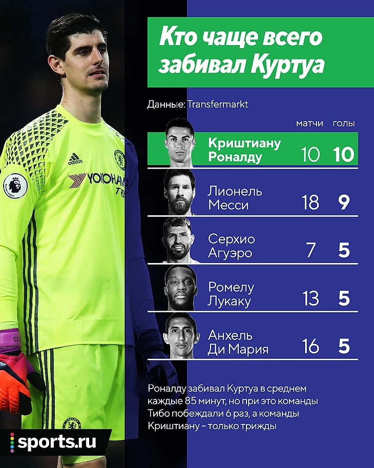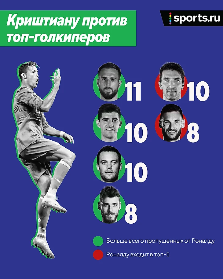 Вы точно заметили, что в нескольких списках есть Криштиану. Его результативность против топ-голкиперов – чистое безумие.
