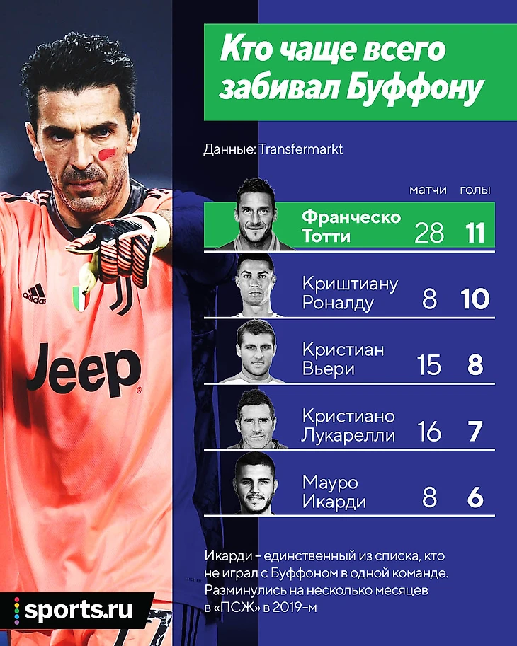 Буффон тем более не пропускал от Криштиану в Серии А (играли в одной команде), но при этом 8 раз пустил в ЛЧ.