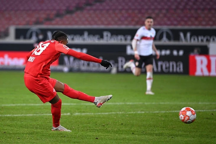 Ситуация изменилась на 10-й минуте. Кристофер Нкунку подавал в штрафную и... заработал пенальти для своей команды: мяч попал в руку защитника «Штутгарта» Константиноса Мавроканоса. Уверенный удар Андре Силвы с точки в правый нижний угол ворот — и счет на табло становится 0:1.