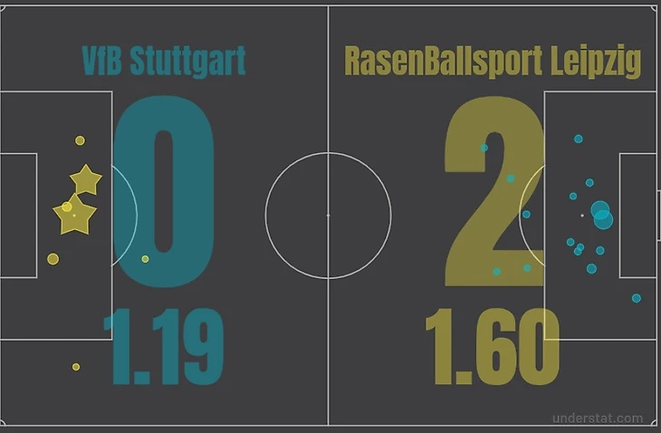 А вот гости, в отличие от хозяев, свой шанс не упустили. На 65-й минуте Доменико Тедеско решил заменить Юсуфа Поульсена, выпустив вместо него Бенжамина Хенрикса. И замена сработала. На 70-й минуте «РБ Лейпциг» удвоил преимущество после отличной контратаки. Бенжамин Хенрикс отнял мяч у игроков «Штутгарта» и сделал передачу на Кристофера Нкунку, который оторвался от защитников, разобрался с голкипером и уверенно отправил мяч в сетку. Счет на табло — 0:2.