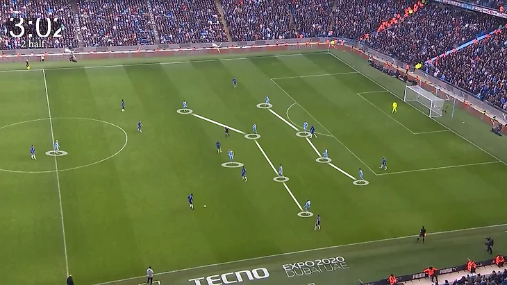 Это очень важные для понимания плана «Сити» слова. Обычно команда Гвардиолы доставляет мяч на чужую половину и делает 20 миллиардов передач, чтобы давить на оборону соперника и в итоге вскрыть ее. Вчера же приоритетной задачей розыгрышей «Сити» было не забить гол, а избежать опасных потерь, которые приведут к контратакам «Челси».