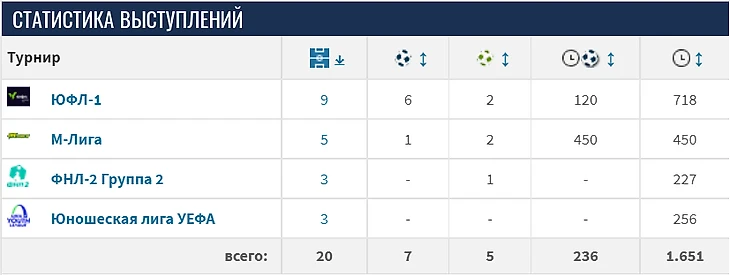 В прошлом сезоне вместе с командой 2004 года рождения выиграл ЮФЛ-2, установив безумный рекорд с 25 победами в 26 турах и разницей мячей 118:27.
