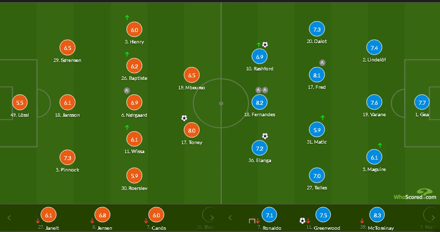 Скотт Мактомини - лучший игрок "МЮ" в матче с "Брентфордом" по версии WhoScored.