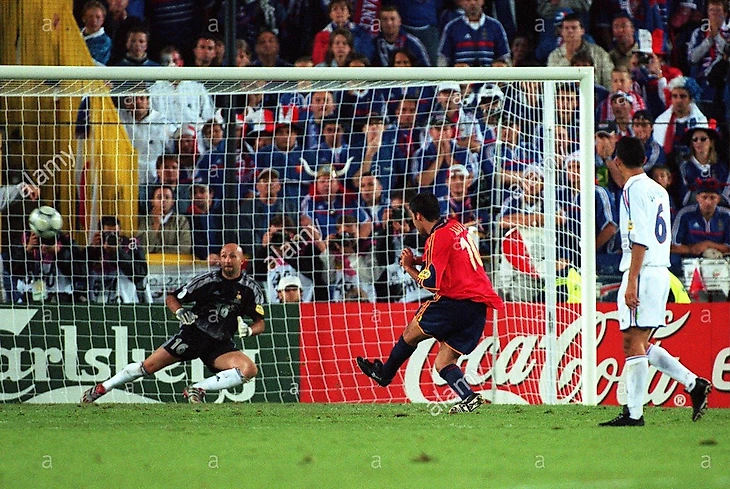 Канисарес; Сальгадо, Абелардо, Пако, Арансабаль; Гвардиола, Эльгера, Мендьета; Рауль; Мунитис и Альфонсо. Такой стартовый состав, который Камачо выставил против Франции с Зиданом. Испания боролась до последних минут... пока Бартез не сбил Абелардо в последней атаке команды. Пенальти, к тому моменту штатного пенальтиста Мендьеты уже не было на поле, без доли сомнения вызвался бить Рауль. Этот мяч его. Альфонсо, еще один из возможных пенальтистов, прекрасно помнит тот момент. «Гвардиола мог ударить, я тоже, но когда только подумал об этом, Рауль уже взял мяч и намеревался исполнить стандарт. В нем никто не сомневался. Он был уверен, что забьет».