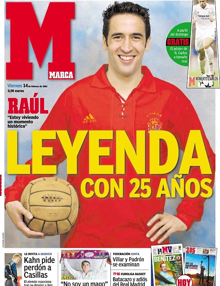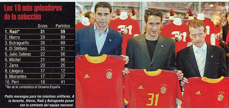 Ранее Рауль провел свой юбилейный 50-й матч, на счету 23 гола, хороший средний показатель. Это случилось в Роттердаме, в товарищеском матче против сборной Нидерландов. Испания проигрывает (1-0), но это хороший момент для футбольных историков, чтобы подбить статистику по поводу годовщины. Раулю 24 года и 9 месяцев, и он бьет все испанские футбольные рекорды. В его возрасте Бутрагеньо провел всего 29 игр, Гордильо 25, Ирибар 19, Субисаррета 14, Камачо и Йерро по 13.