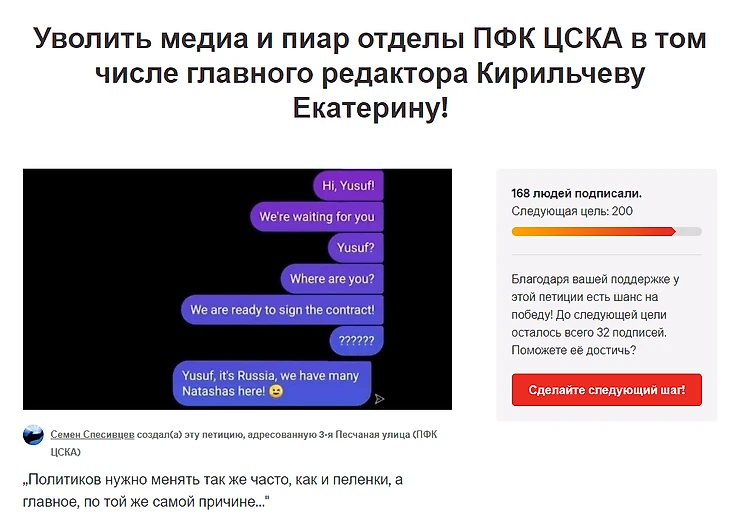 Вероятно, моя статья понравились активным фанатам «красно-синих», благодаря чему несколько абзацев из моего поста оказались в петиции по поводу увольнения сотрудников и руководителей, причастных к репутационному провалу.