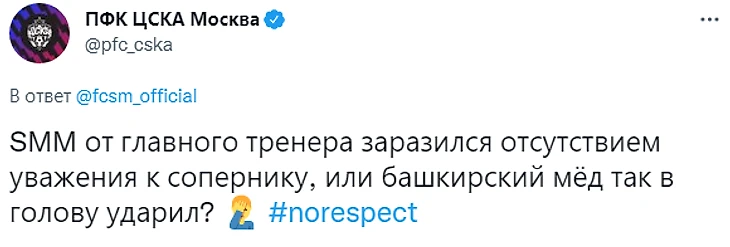 Так, в прошлом сезоне тот же армейский клуб стал невольным участником креатива «Спартака». Твит «Привет, конюшня», появившийся после выигранного дерби, поджог множество точек, в том числе и у SMM армейцев.