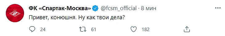 Реакция на публикацию в Твиттере на 6 слов выразилась не только в баталиях в соцсетях, но и обращении к генсеку РФС с просьбой наказать красно-белых. Комитет по этике «Спартак» в итоге оштрафовал (по совокупности за твит и матчевый перфоманс трибун), но «конюшня» разошлась по сети.