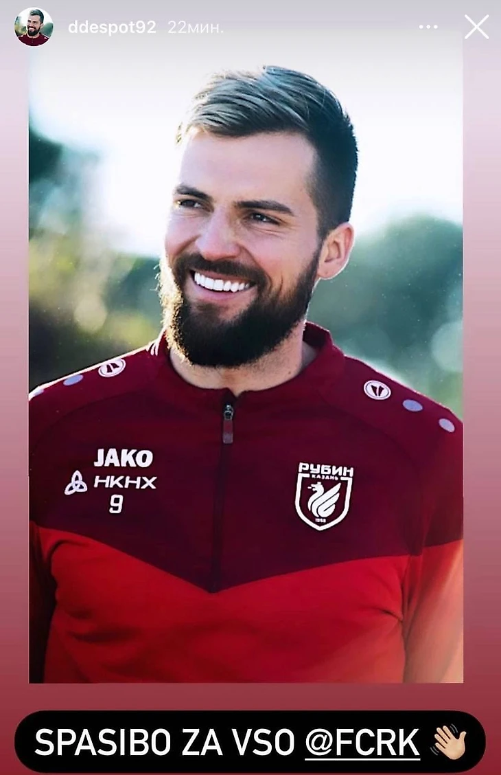 Деспотович попрощался с «Рубином» в сторис: по информации «СЭ», тренерский штаб отправил форварда в дубль, потому что Джордже не хочет уходить из клуба.