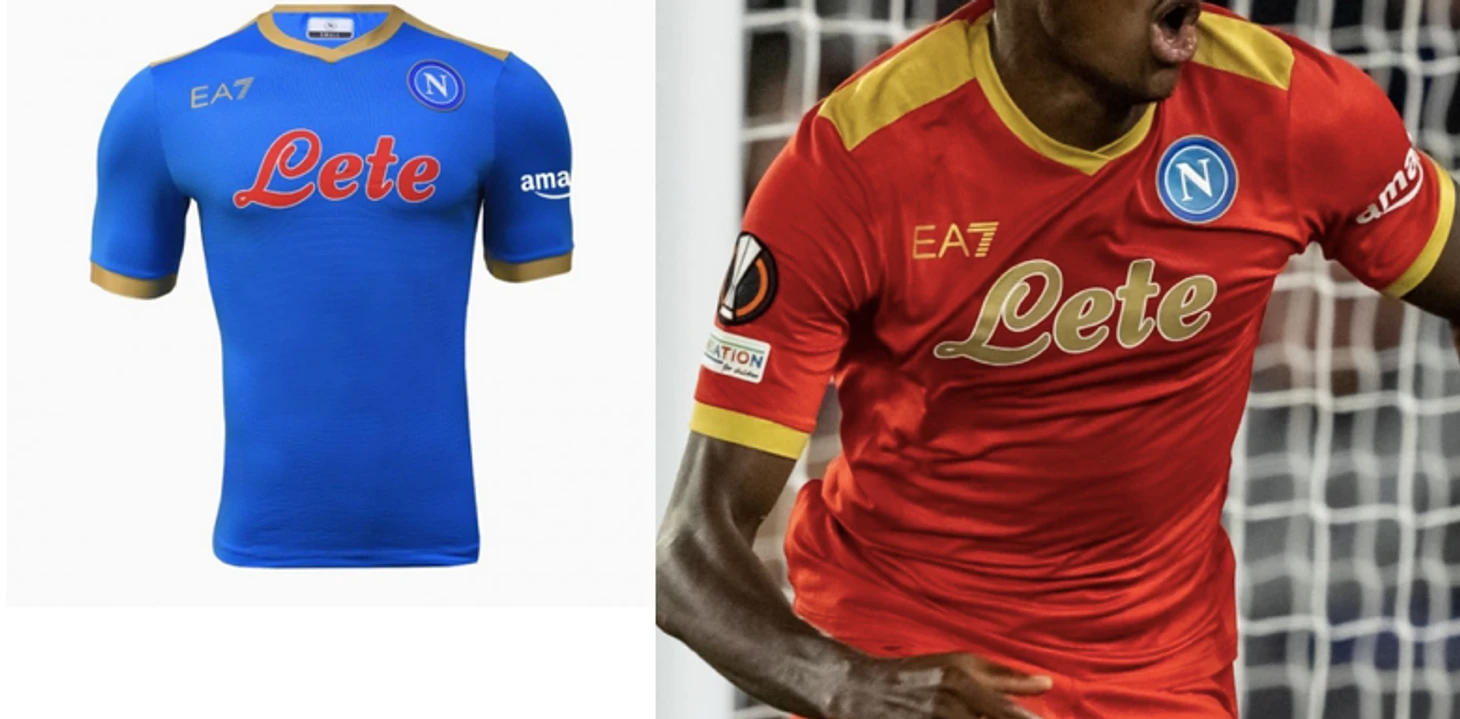 Потом оказалось, что на Лигу Европы у «Наполи» чуть модернизированные комплекты. Вот такие (отличаются цветом окантовки). Это плюс еще две формы.