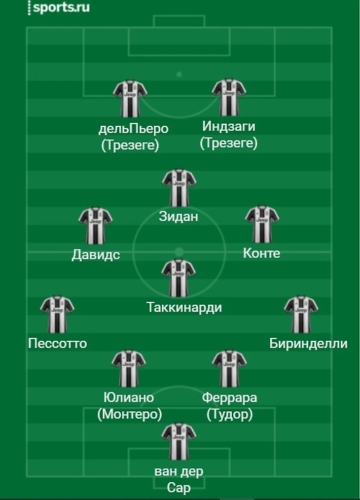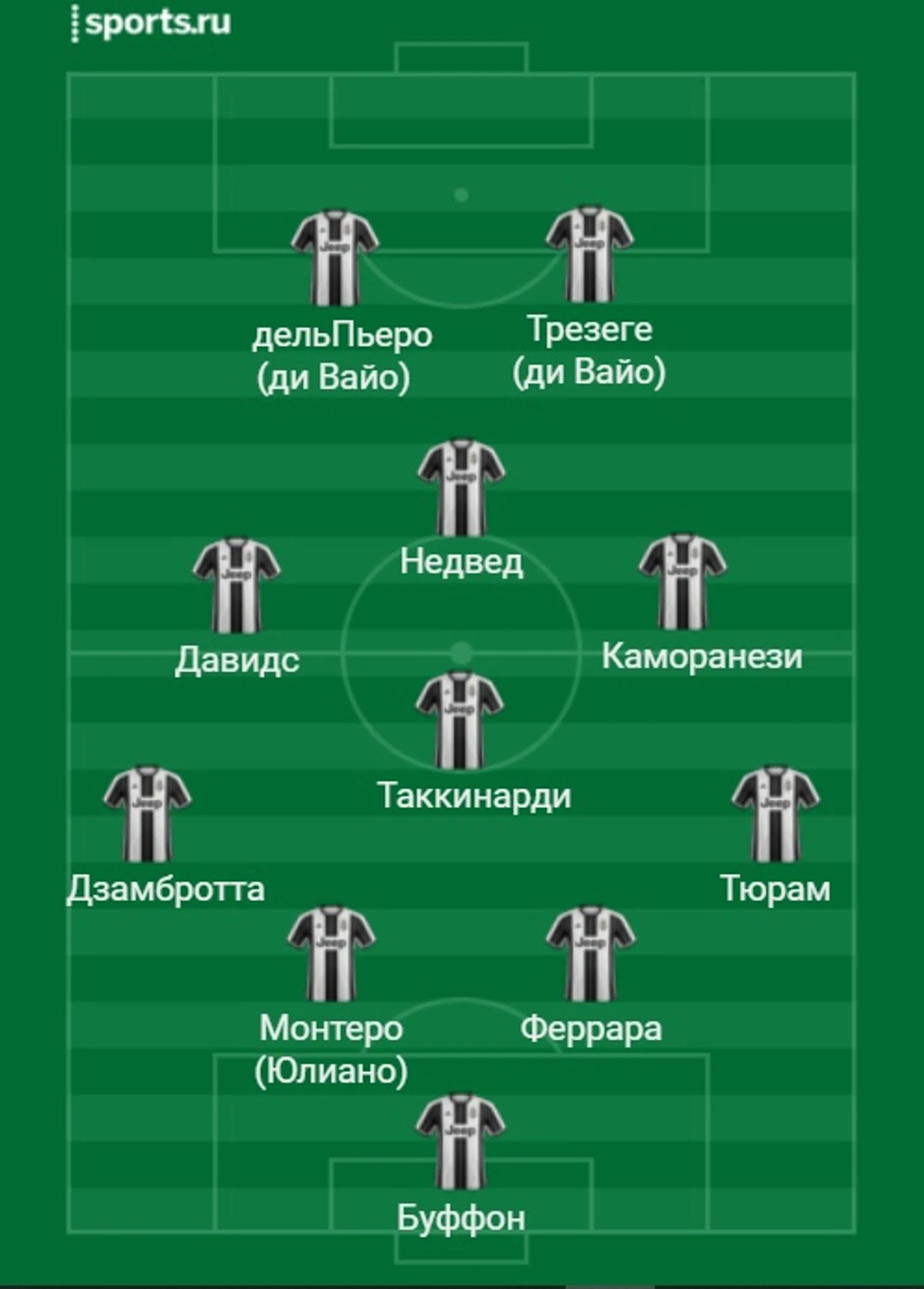 Это была победа не только в отдельно взятом противостоянии, но и в целом нового курса с новым лидером Павлом Недведом, заменившим Зизу. В тот год чех был неудержим и в итоге получил Золотой мяч. Жаль, не сыграл в финале из-за перебора желтых, иначе результат мог оказаться совершенно другим. Помимо Недведа, замечательные сезоны выдали практически все. Тюрам в компании с ветеранами Феррарой и Монтеро были непроходимы в обороне, Дзамбротта и Каморанези рвали фланги, как всегда крут был Давидс, прекрасно сыграл капитан Алекс дель Пьеро. До золотого дубля не хватило совсем чуть-чуть.