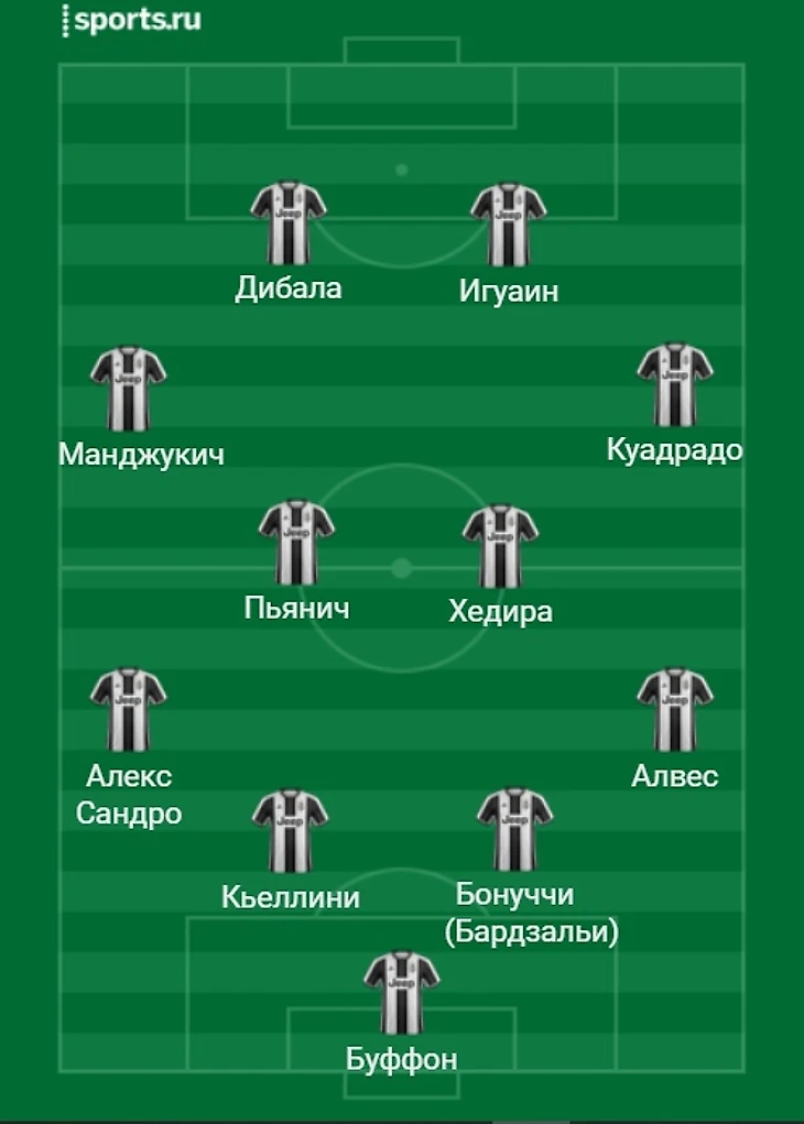 5. Цепкий и мобильный Юве Макса Аллегри, сезон 2016/2017. Два года спустя стартовый состав туринцев обновился почти полностью: на своих местах оставались только легендарный вратарь и его верная пара центрбеков. На место латералей Эвра и Лихштайнера пришли бразильцы Алекс Сандро и Даниэл Алвес, что добавило огня в атаке, при этом практически не сказалось на надежности обороны. Новым дирижером стал Пьянич, на флангах действовали опытный трудяга Манджукич и острый вингер Куадрадо. Аргентинская связка Дибала-Игуаин терроризировала защитные порядки соперников.