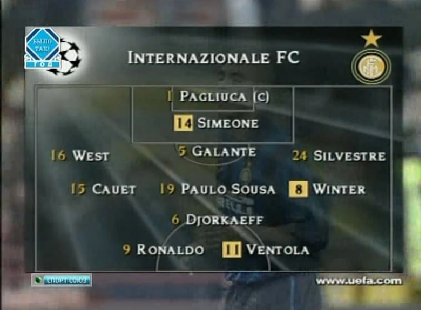 А вот для контраста состав «Интера». Всего три итальянца, три француза, аргентинец (Диего Симеоне в роли либеро!), нигериец (вы знали его по косичкам), голландец, португалец. И один Феномен!