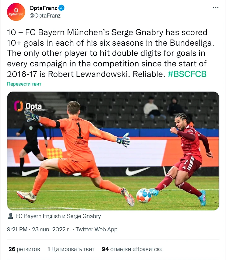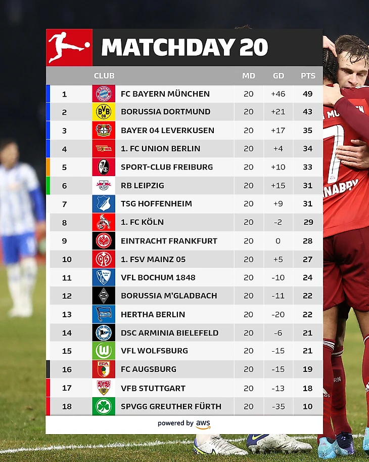 Команда никогда не забивала 65 голов после 20 игровых дней — в этом сезоне «Бавария» на пути к 111 голам. В 67-м матче Бундеслиги подряд «Бавария» забила хотя бы один гол — рекорд Бундеслиги был продлен. В последний раз «Бавария» не забивала голы в Бундеслиге почти два года назад, в феврале 2020 года, в матче против «Лейпцига» (0:0).