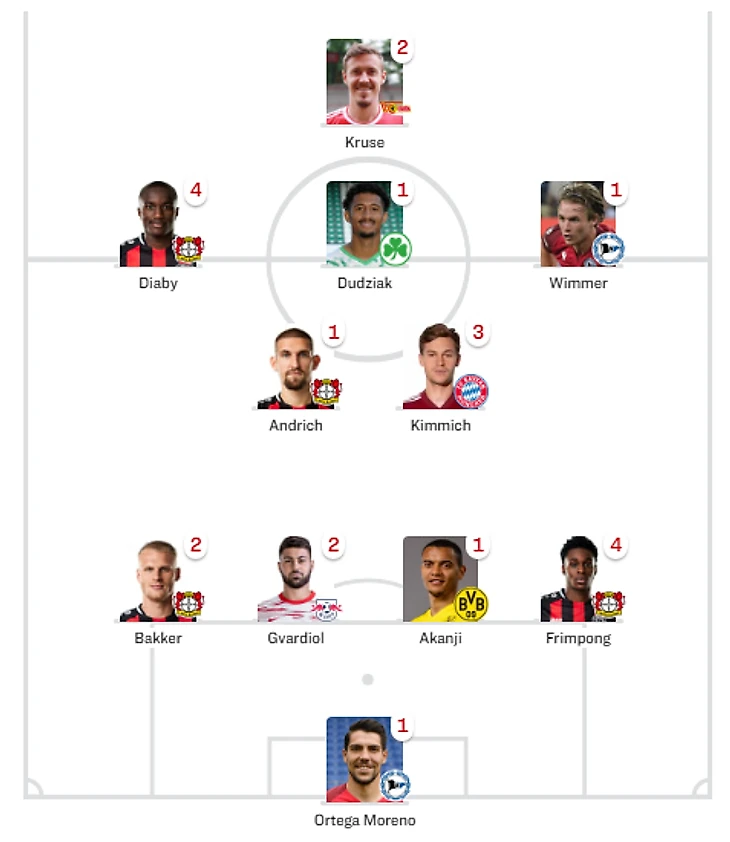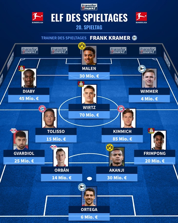 Вилли Орбан забил свой первый гол в Бундеслиге в сезоне за «РБ Лейпциг» в победе над «Вольфсбургом». В своем 16-м голе в Бундеслиге он в двенадцатый раз забил головой.