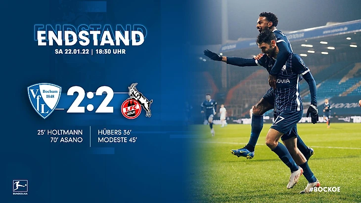 Битва середняков чемпионата подарила болельщикам зрелищную ничью. «Бохум» вышел на поле с настроением завоевать очки, команда начала давить с первых минут встречи, чаще атакуя через правый фланг. «Кёльн» был больше сосредоточен на обороне, но не закрывался и всё же сумел доставить неприятностей защитникам соперника.
