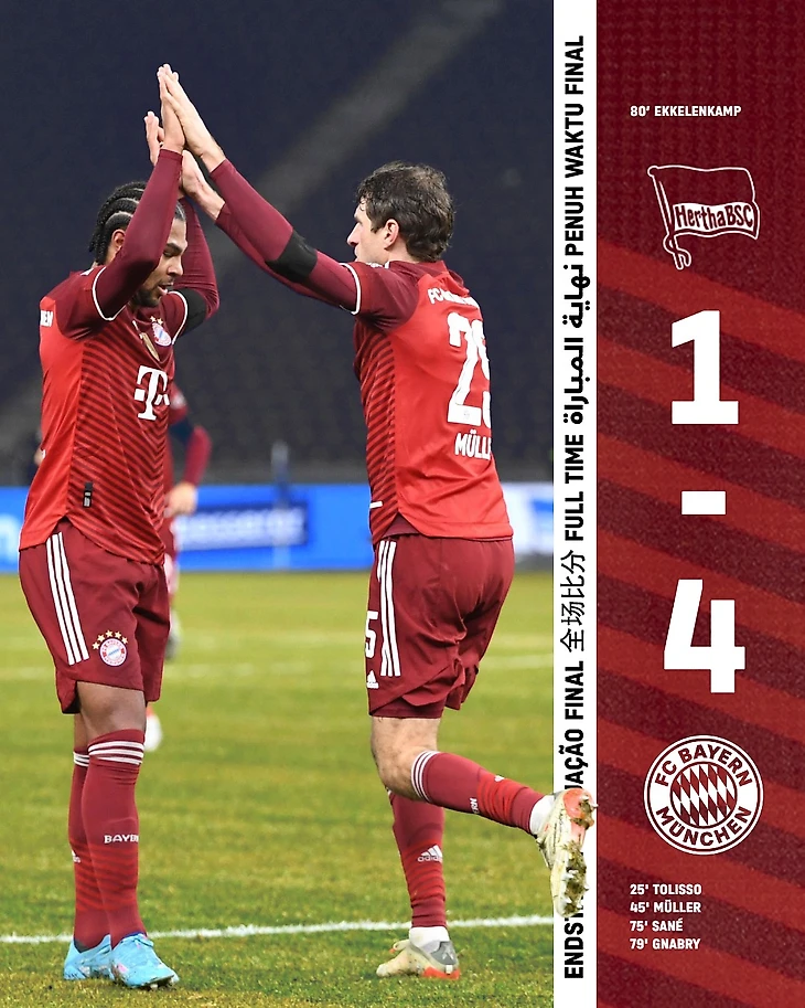 Результат встречи был предсказуем, даже два отменённых гола баварцев не помогли «Герте» справиться с Мюнхеном. «Бавария» забирает свои заслуженные очки и отправляется домой готовиться к следующему матчу, который будет для мюнхенцев не таким простым, ведь на «Альянц Арену» приедут «быки» из Лейпцига.