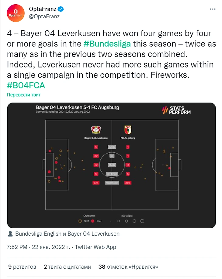 «Байер» уже четырежды в этом сезоне выиграл с четырьмя и более голами в одной игре — это в два раза больше, чем в предыдущих двух сезонах вместе. Помимо этого, такого количества успешных игр в сезоне еще не было в истории леверкузенцев.