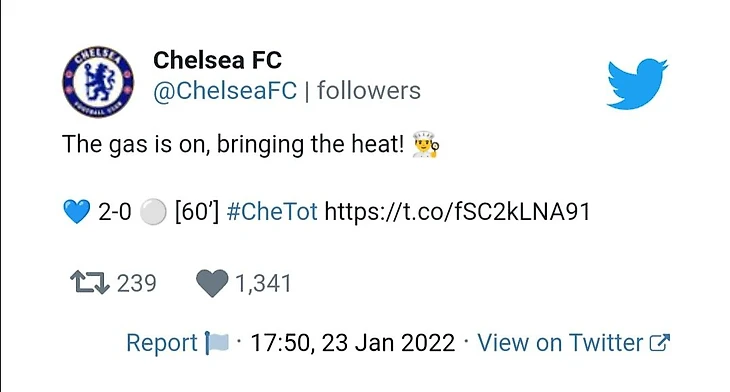 Во время вчерашнего матча с «Тоттенхэмом» в твиттере «Челси» появился такой пост: