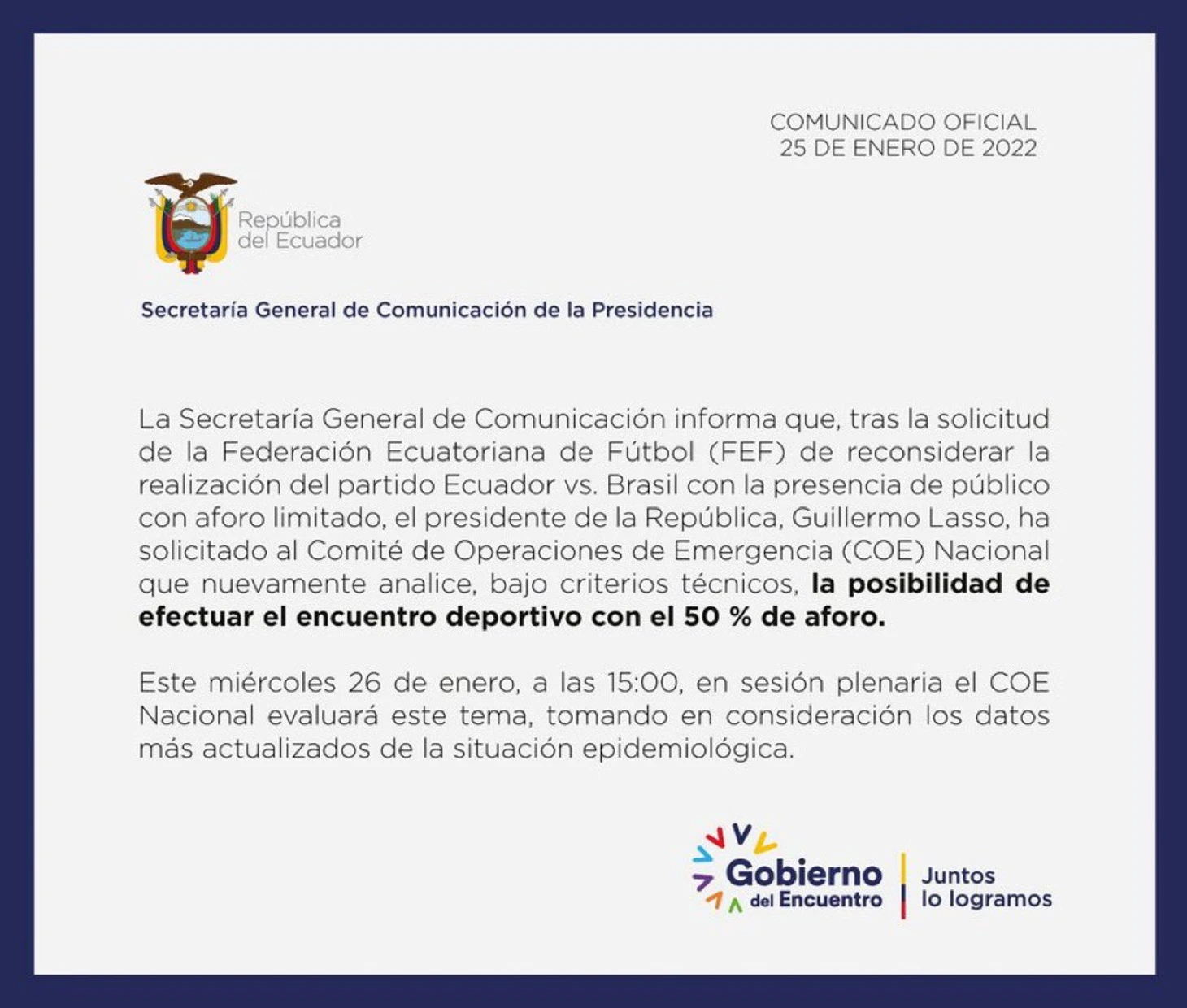 Конечно президент Эквадора попросил свои ведомства разрешить хотя бы 50%-ную заполняемость