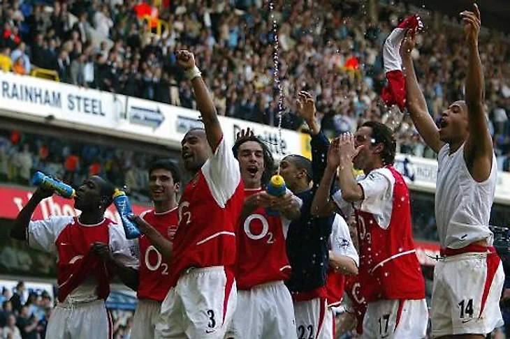 Далее был разгром «Лидса» 5-0, и та самая поездка на «Уайт Харт Лейн». Если гости не проигрывали, то становились 13-кратными чемпионами Англии, ведь в параллельном матче «Челси» дома уступил «сорокам». «Шпоры» шли на 15-й строчке, особо высоко они уже не могли прыгнуть, но находились лишь в 6 баллах от вылета, что дополнительно придавало накал Дерби Северного Лондона. Уже на 3-й минуте отличился Виейра, дав понять, что притязания «Арсенала» на титул вполне обоснованы. А потом Пирес на 35-й удвоил преимущество после небольшого перепаса в штрафной «Тоттенхэма». Но это было дерби, и хозяева, разумеется, не опустили рук: на 62-й Джейми Реднапп «размочил» счет, невероятно пробив из-за пределов штрафной площади. В самом конце встречи Робби Кин счет сравнял, реализовав пенальти, но в конечном итоге ничья «пушкарей» нисколько не расстроила: чемпионы!