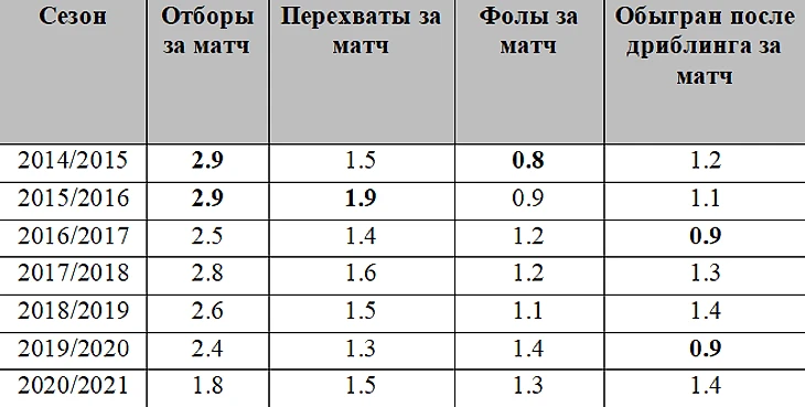 Далее хочу обратить внимание на ряд ключевых показателей для игрока данной позиции.