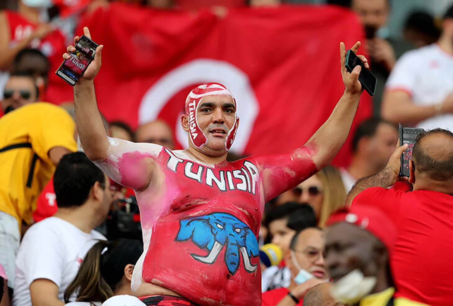 Тунисский болельщик нанес изображение слона прямо на тело.