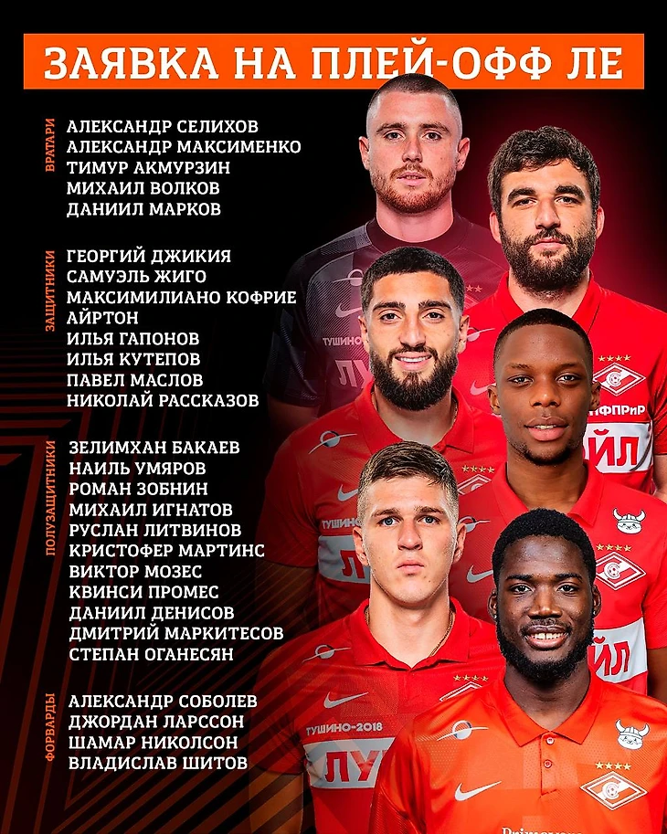 Рассказов, Мартинс и Николсон — в заявке «Спартака» на плей-офф Лиги Европы