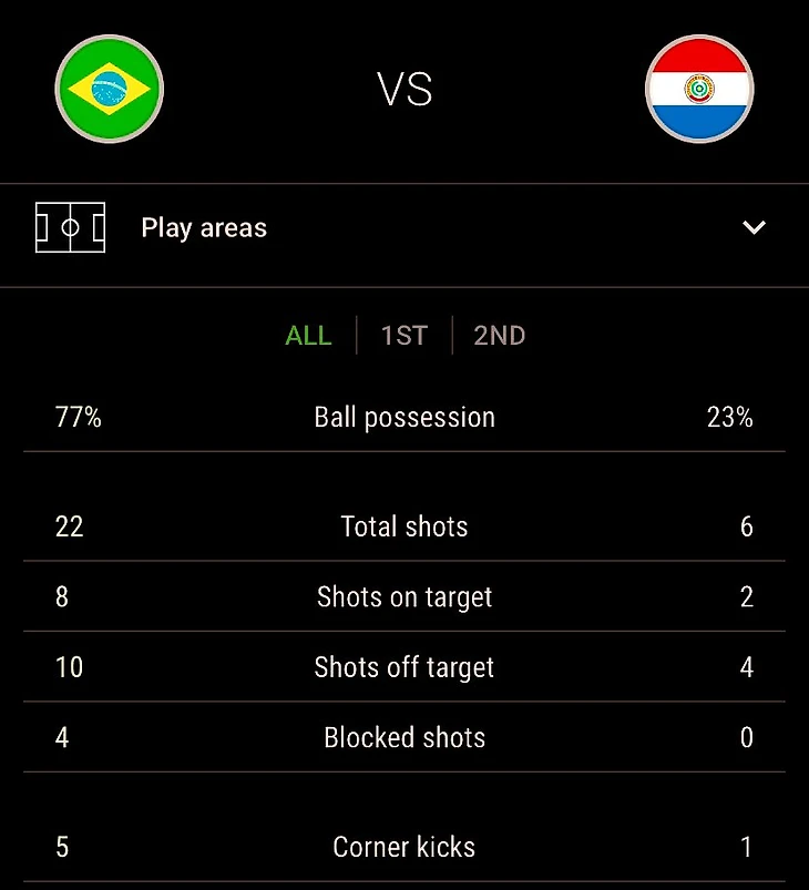 Бразильцы поняли, что лучше не шутить с гуарани и окончательно забрали мяч в свои ноги. 77 на 23-это проценты владения по итогам всех 90 минут. Неприлично много даже для двусторонки, а здесь был отборочный матч ЧМ.