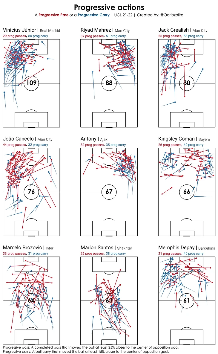 Согласно FBref лидеры евросезона по прогрессивным пасам в пересчёте на матч выглядят следующим образом