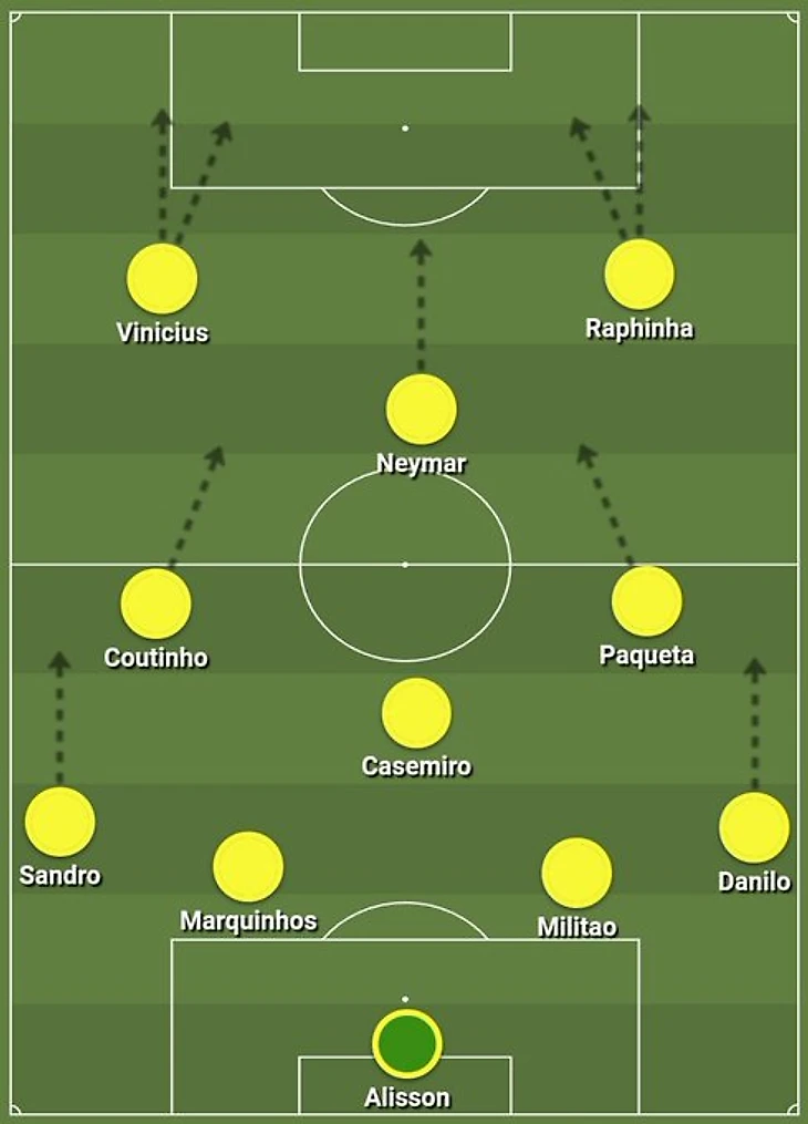 Другое дело, что в установках Тите, видимо, этого не предусмотрено. Хотя для сильных интенсивно прессингующих европейских команд типа Франции это трио может быть конкурентоспособным, «выпадающее» в черновой работе звено по имени Коутиньо будет «съедено» на мой взгляд довольно быстро и просто.