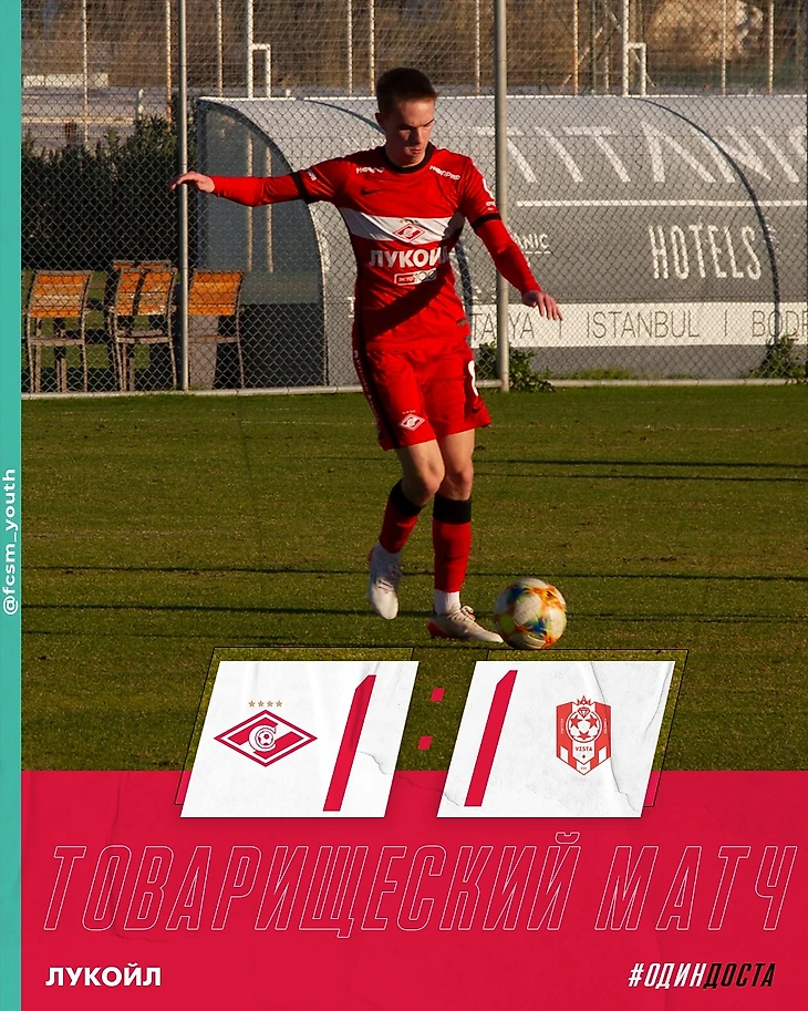 Соперником молодежки «Спартака» по первому матчу на сборе в Турции стала команда «Виста» из Геленджика, выступающая в чемпионате Краснодарского края. Впервые за дубль сыграли двое игроков из команды Академии 2005 года рождения — полузащитник Никита Постников и нападающий Тимур Ким. Именно Постников и открыл счет в матче вскоре после выхода на замену.