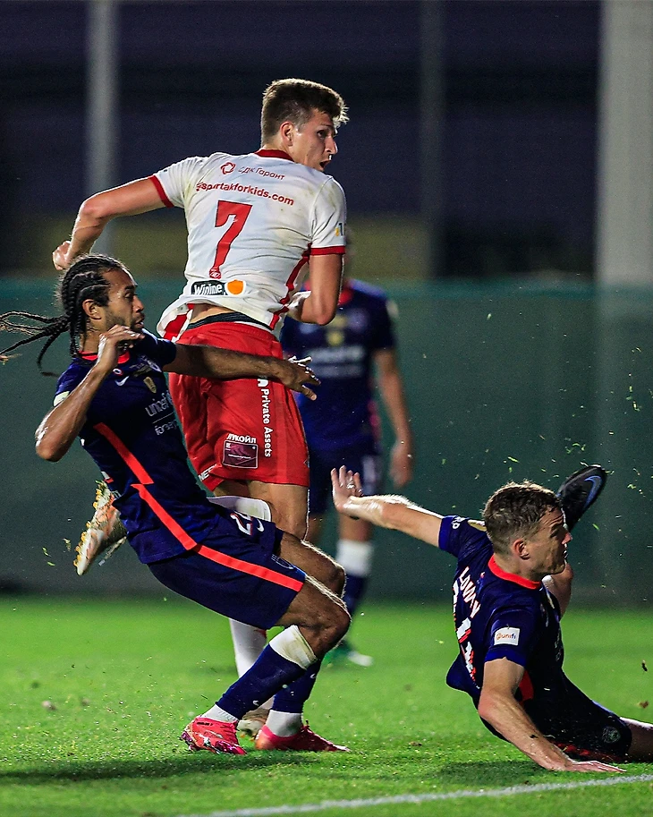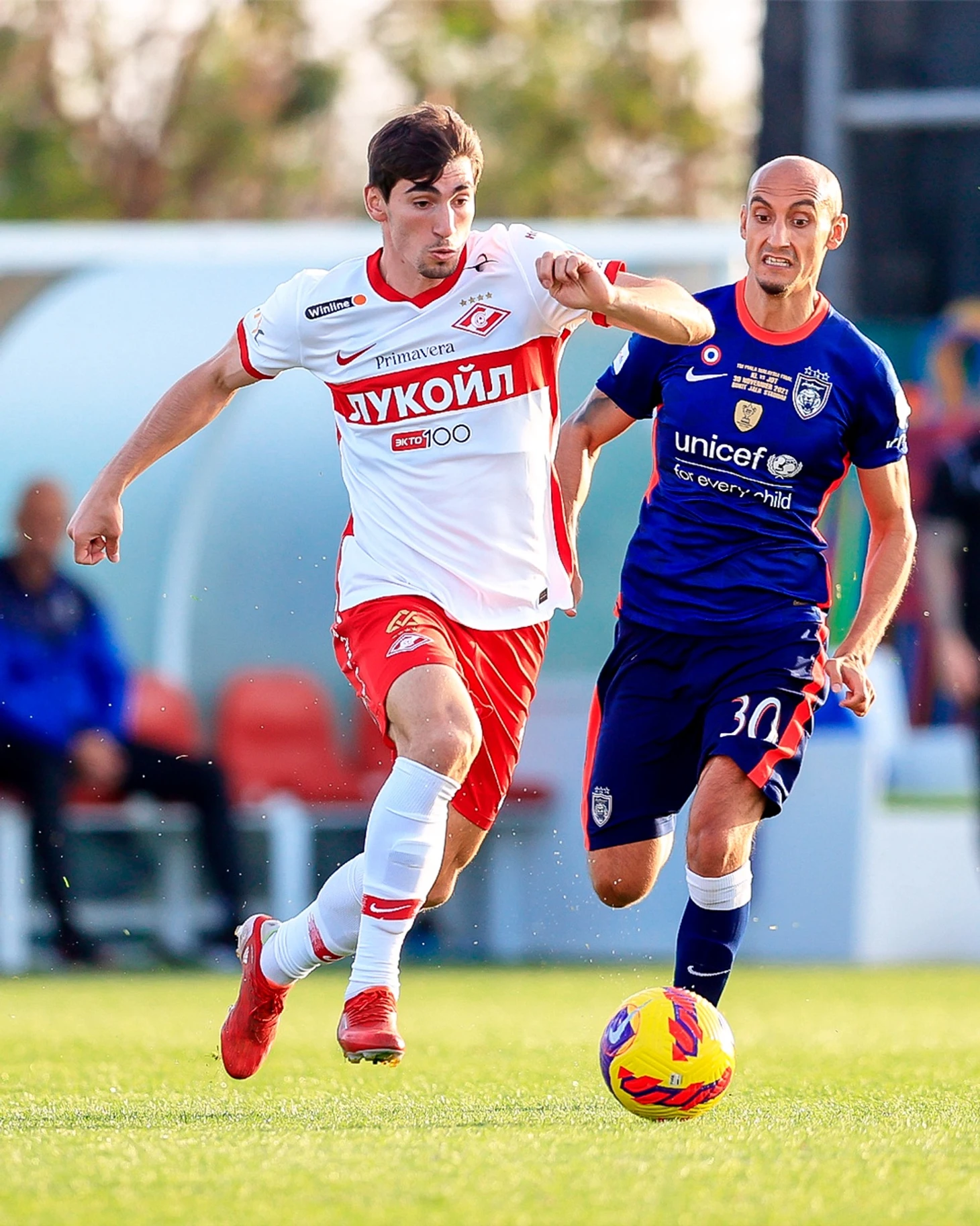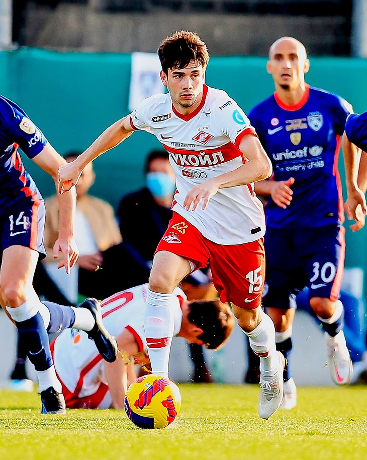 Одна из особенностей — Литвинов снова в тройке центральных защитников, но не вместо, а вместе с Кофрие и еще с Гапоновым. Плюс Свинов в воротах, Хлусевич на правом фланге, получивший капитанскую повязку Умяров в паре с Пруцевым в центре поля и Соболев на острие, которого должны были поддерживать Игнатов с Бакаевым. И в целом игра спартаковцев в первом тайме получилась неоднозначной и словно сотканной из лоскутов.