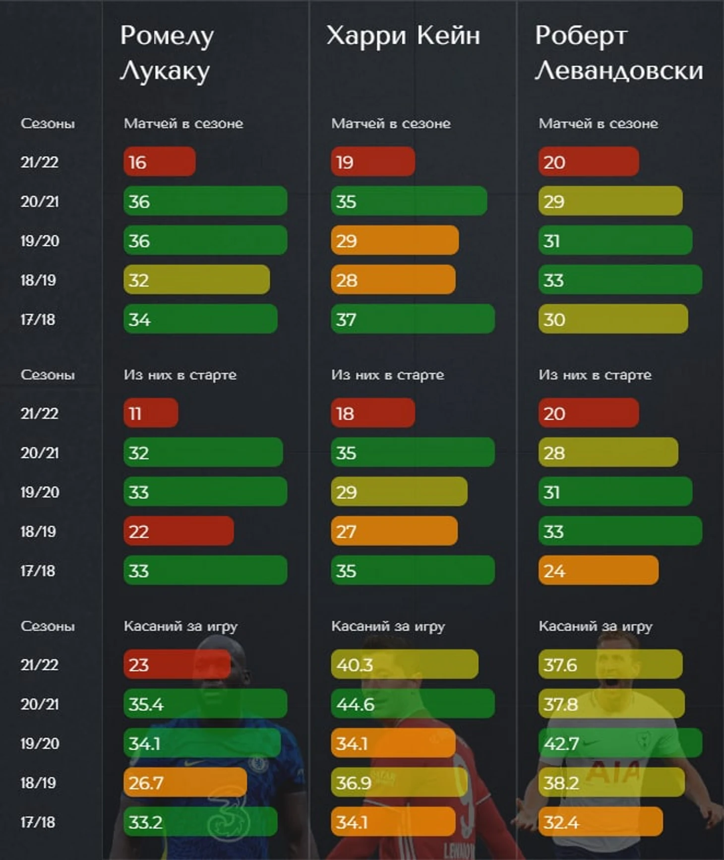1. Лукаку довольно стабилен в выступлениях, соответственно, травмы его не очень сильно мучают и он имеет доверие от тренеров.