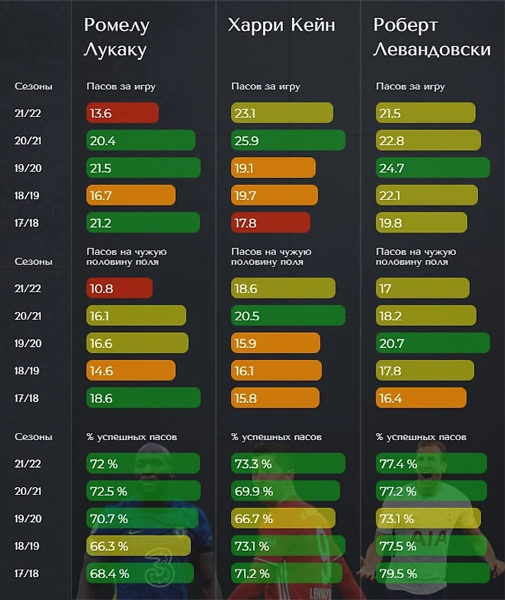 Лукаку vs Левандовски vs Кейн. Созидание атак и участие в билдапе
