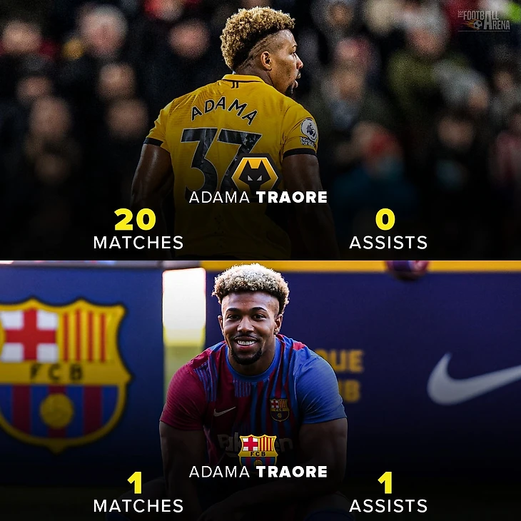 Адама Траоре отдал за «Барселону» больше передач за 21 минуту, чем за 20 матчей Премьер-лиги за «Вулверхэмптон» в этом сезоне.