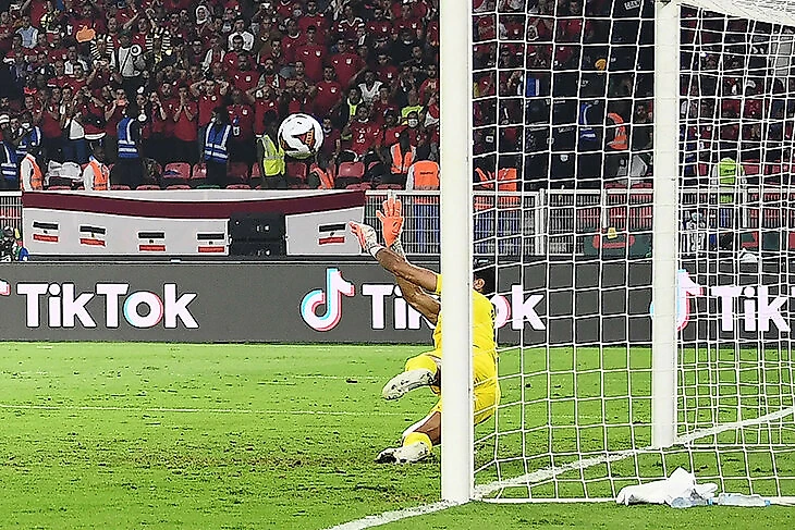 Но тут свое слово сказал вратарь Габаски. Мане пробил сильно, но по центру. Очередной сэйв египетского вратаря на пенальти!